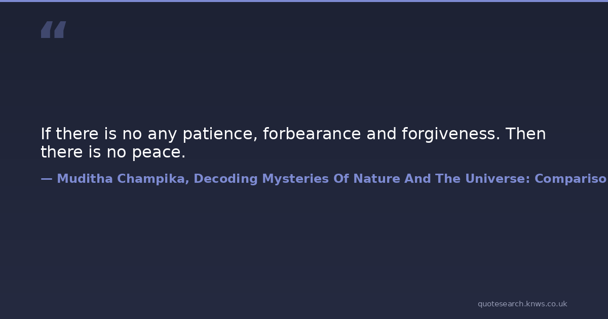 If there is no any patience, forbearance and forgiveness. Then there is no peace. human-nature humanity patience peace wisdom Download Image Share on X Share on Facebook Copy Link