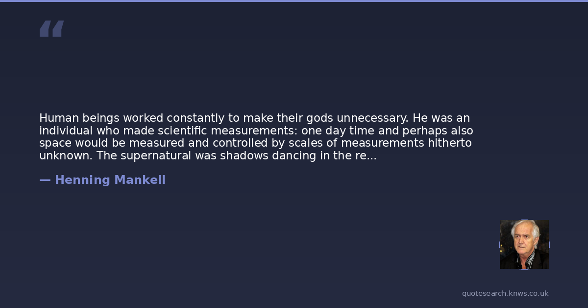 Human beings worked constantly to make their gods unnecessary. He was an individual who made scientific measurements: one day time and perhaps also space would be measured and controlled by scales of measurements hitherto unknown. The supernatural was shadows dancing in the remains of a childhood fear of the dead.