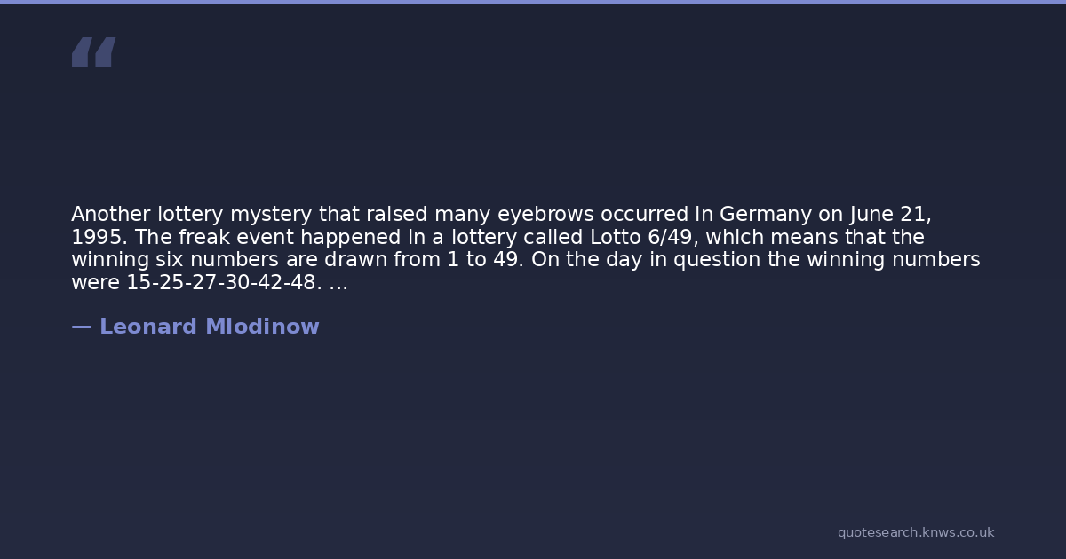 Another lottery mystery that raised many eyebrows occurred in Germany on June 21, 1995. The freak event happened in a lottery called Lotto 6/49, which means that the winning six numbers are drawn from 1 to 49. On the day in question the winning numbers were 15-25-27-30-42-48. The very same sequence had been drawn previously, on December 20, 1986. It was the first time in 3,016 drawings that a winning sequence had been repeated. What were the chances of that? Not as bad as you'd think. When you do the math, the chance of a repeat at some point over the years comes out to around 28 percent.
