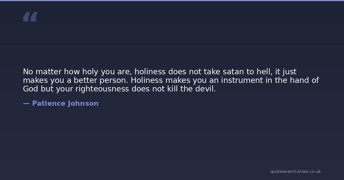 No matter how holy you are, holiness does not take satan to hell, it just makes you a better person. Holiness makes you an instrument in the hand of God but your righteousness does not kill the devil.