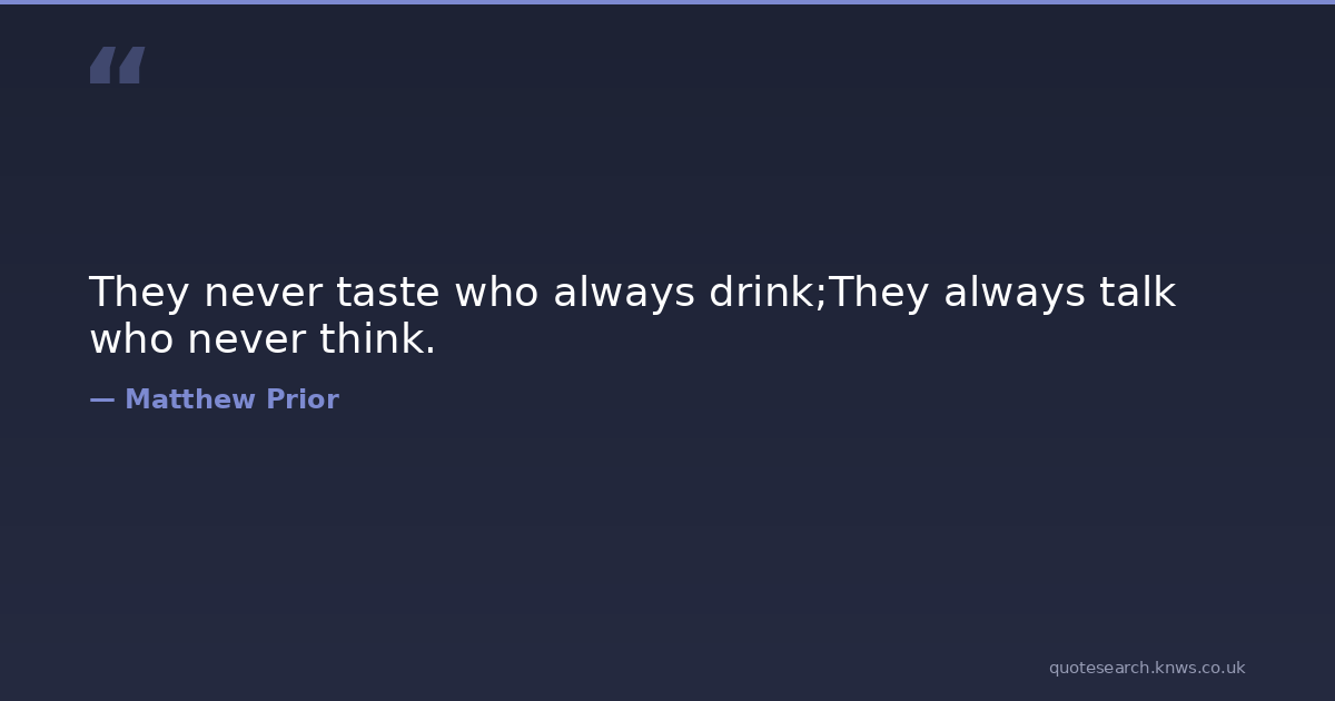 They never taste who always drink;They always talk who never think.