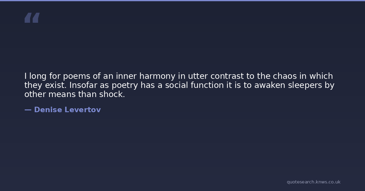 I long for poems of an inner harmony in utter contrast to the chaos in which they exist. Insofar as poetry has a social function it is to awaken sleepers by other means than shock.