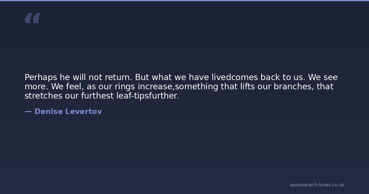 Perhaps he will not return. But what we have livedcomes back to us. We see more. We feel, as our rings increase,something that lifts our branches, that stretches our furthest leaf-tipsfurther.