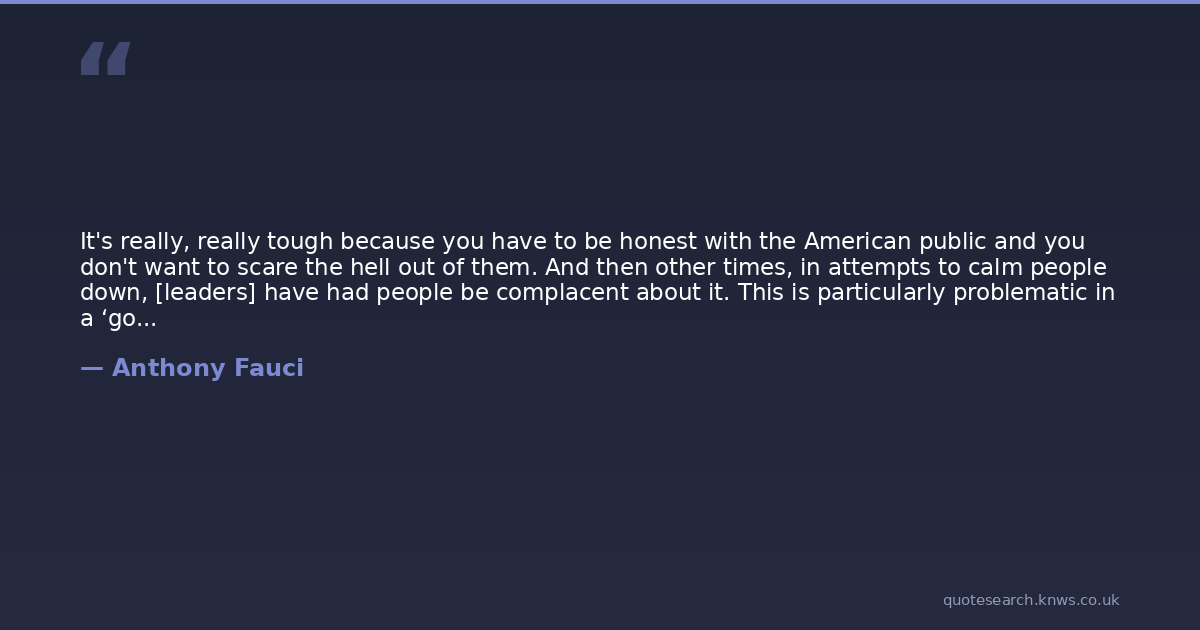 It's really, really tough because you have to be honest with the American public and you don't want to scare the hell out of them. And then other times, in attempts to calm people down, [leaders] have had people be complacent about it. This is particularly problematic in a ‘gotcha town like Washington.