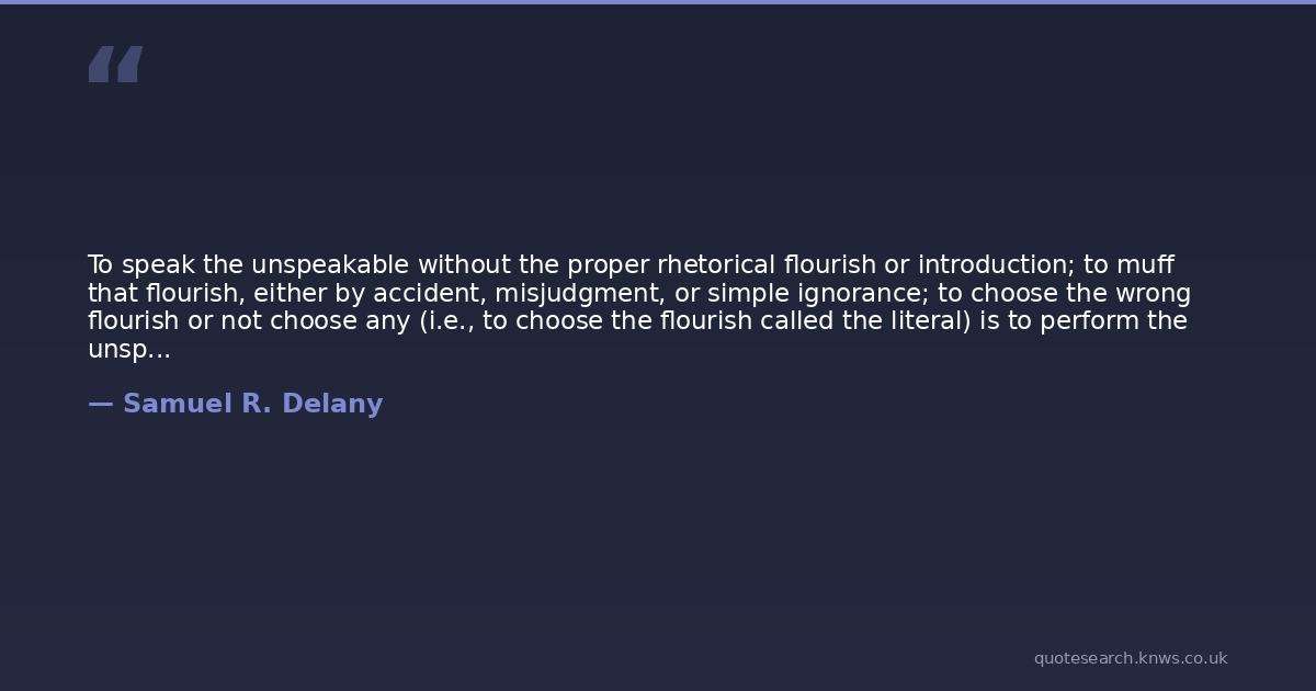 To speak the unspeakable without the proper rhetorical flourish or introduction; to muff that flourish, either by accident, misjudgment, or simple ignorance; to choose the wrong flourish or not choose any (i.e., to choose the flourish called the literal) is to perform the unspeakable.