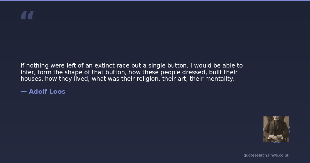 If nothing were left of an extinct race but a single button, I would be able to infer, form the shape of that button, how these people dressed, built their houses, how they lived, what was their religion, their art, their mentality.
