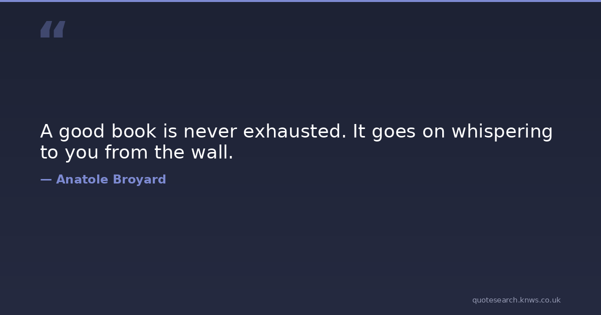 A good book is never exhausted. It goes on whispering to you from the wall.