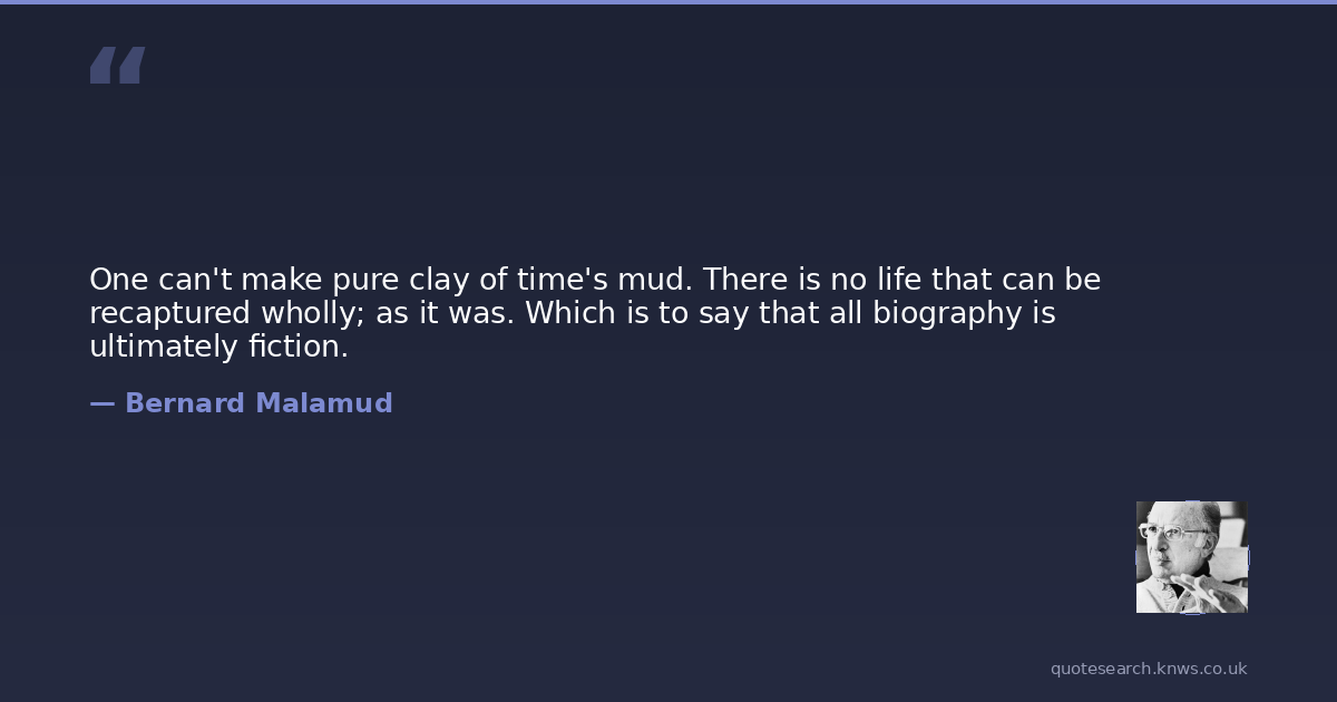 One can't make pure clay of time's mud. There is no life that can be recaptured wholly; as it was. Which is to say that all biography is ultimately fiction.