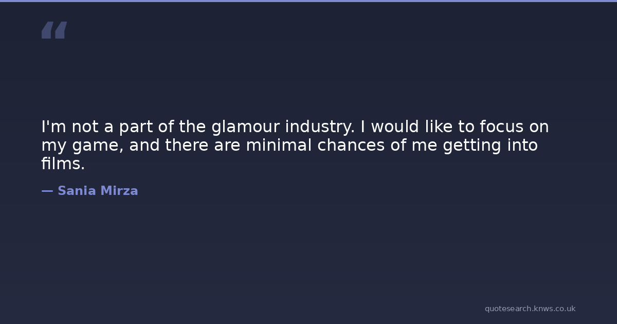 I'm not a part of the glamour industry. I would like to focus on my game, and there are minimal chances of me getting into films.