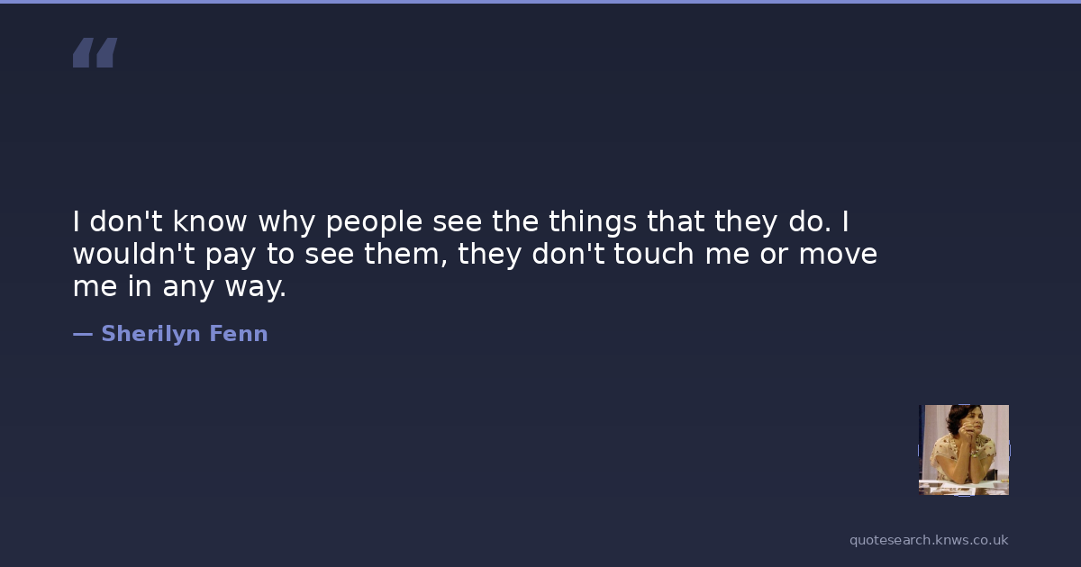 I don't know why people see the things that they do. I wouldn't pay to see them, they don't touch me or move me in any way.