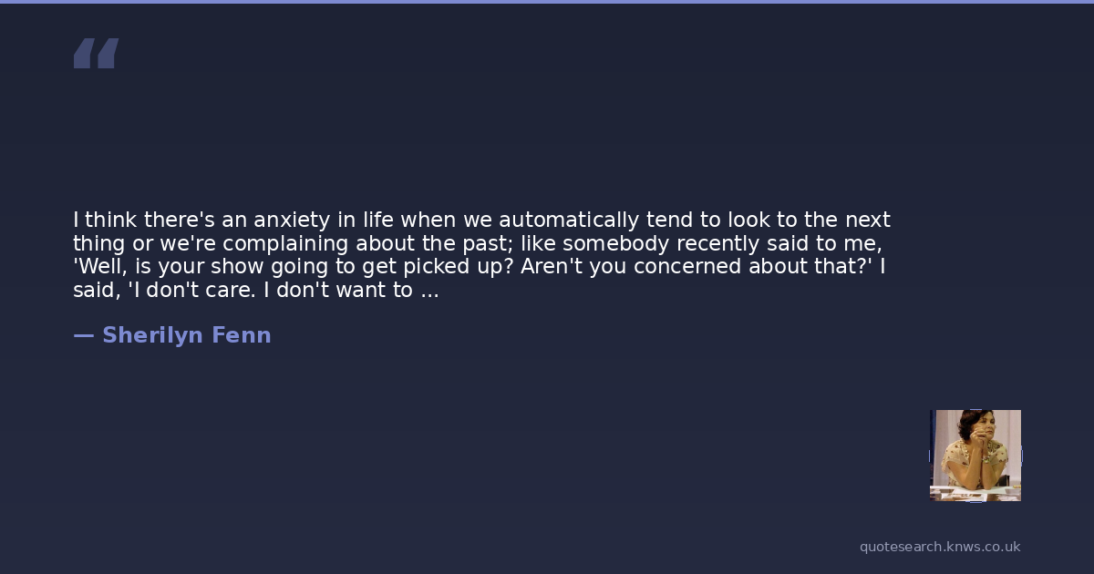 I think there's an anxiety in life when we automatically tend to look to the next thing or we're complaining about the past; like somebody recently said to me, 'Well, is your show going to get picked up? Aren't you concerned about that?' I said, 'I don't care. I don't want to worry about that because worrying is not going to make it happen or not happen.' I want to trust that if it does, then that's what's supposed to happen and if it doesn't get picked up, then that's okay, too. It's just a more peaceful way to live.