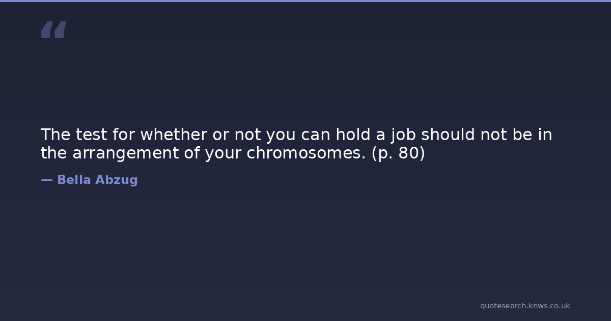 The test for whether or not you can hold a job should not be in the arrangement of your chromosomes. (p. 80)