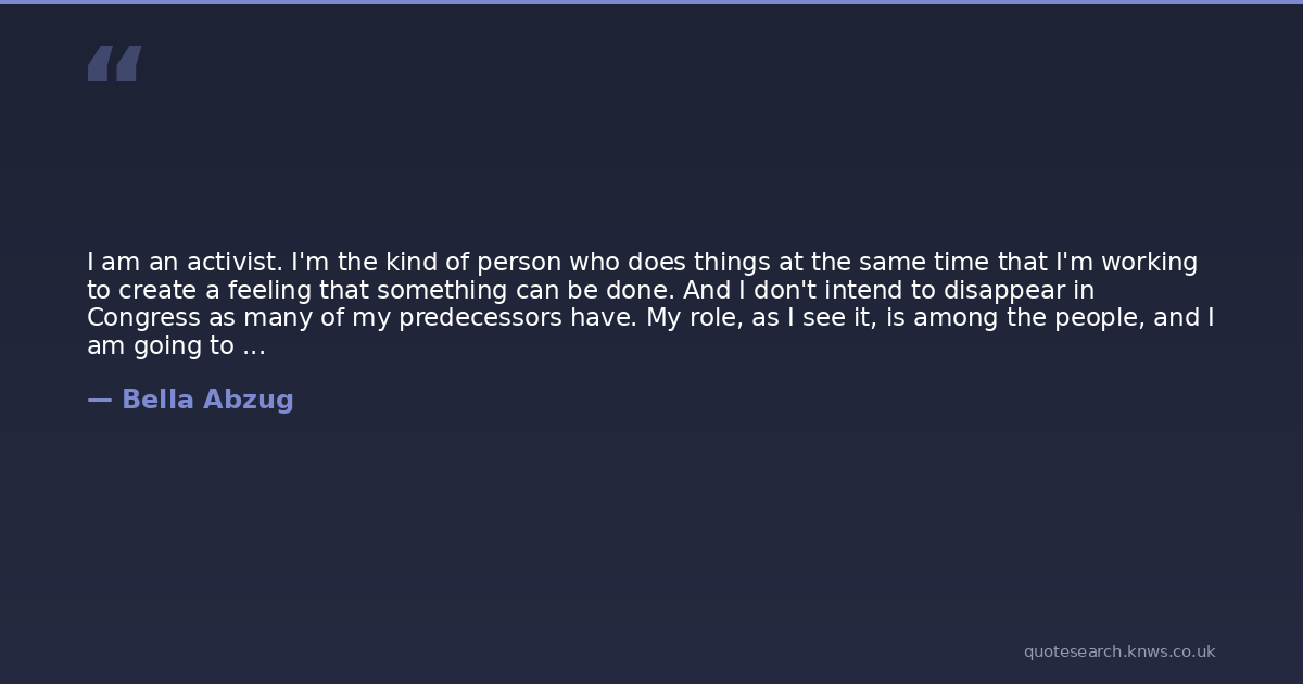 I am an activist. I'm the kind of person who does things at the same time that I'm working to create a feeling that something can be done. And I don't intend to disappear in Congress as many of my predecessors have. My role, as I see it, is among the people, and I am going to be outside organizing them at the same time that I'm inside fighting for them. That is the kind of leadership that I believe will build a new majority in this country, and it was primarily in the hope of being able to exemplify that kind of leadership that I ran for Congress.