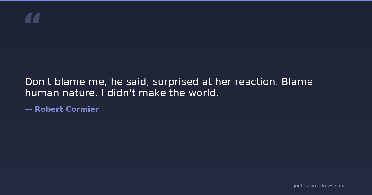 Don't blame me, he said, surprised at her reaction. Blame human nature. I didn't make the world.