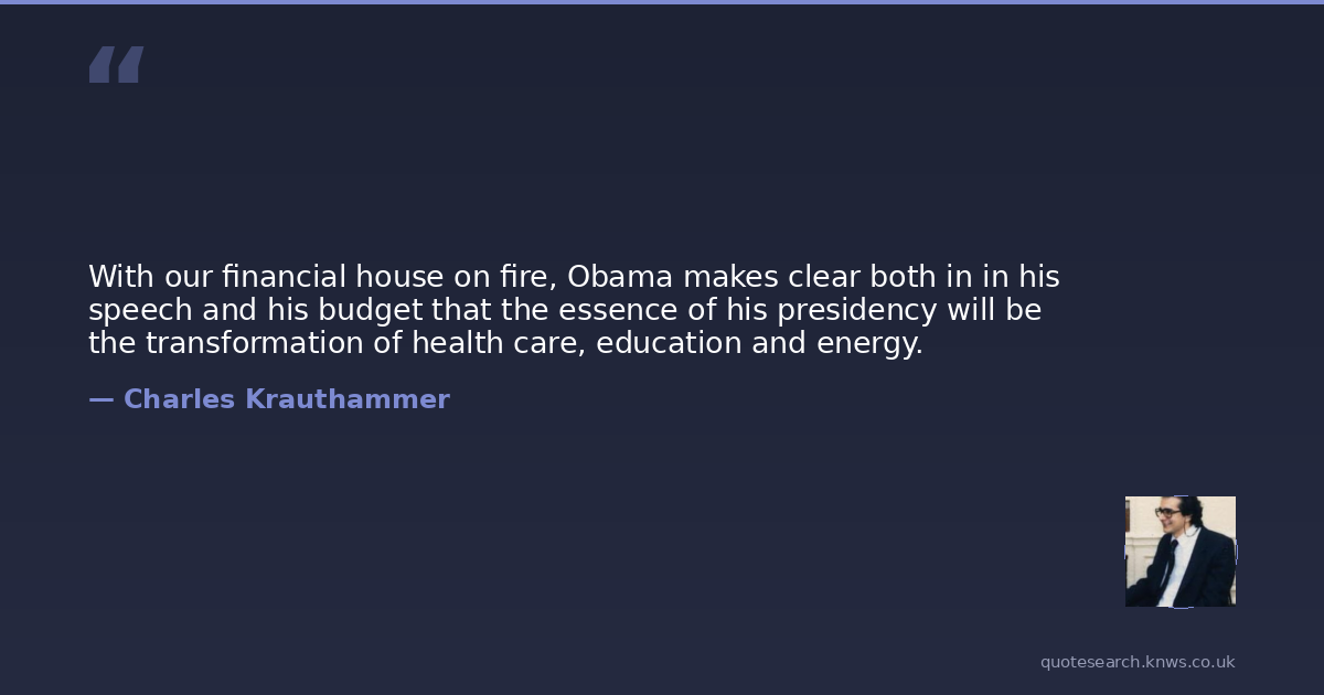With our financial house on fire, Obama makes clear both in in his speech and his budget that the essence of his presidency will be the transformation of health care, education and energy.