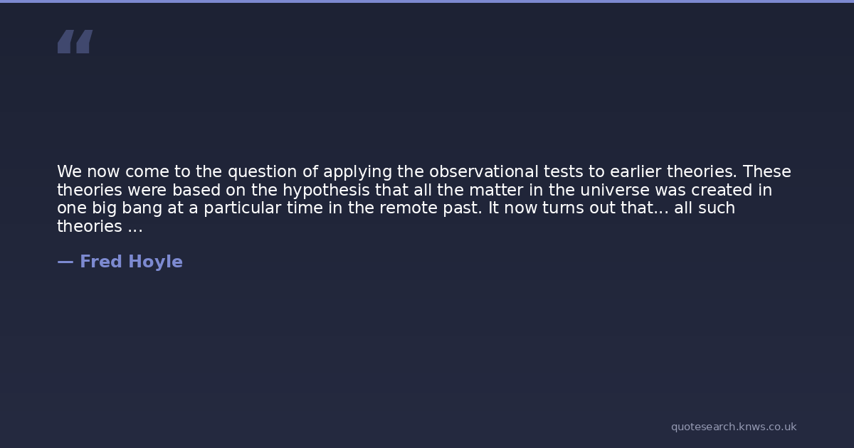 We now come to the question of applying the observational tests to earlier theories. These theories were based on the hypothesis that all the matter in the universe was created in one big bang at a particular time in the remote past. It now turns out that... all such theories are in conflict with observational requirements.