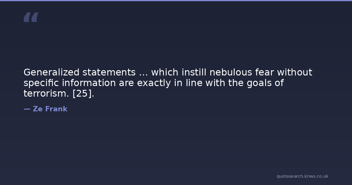 Generalized statements … which instill nebulous fear without specific information are exactly in line with the goals of terrorism. [25].