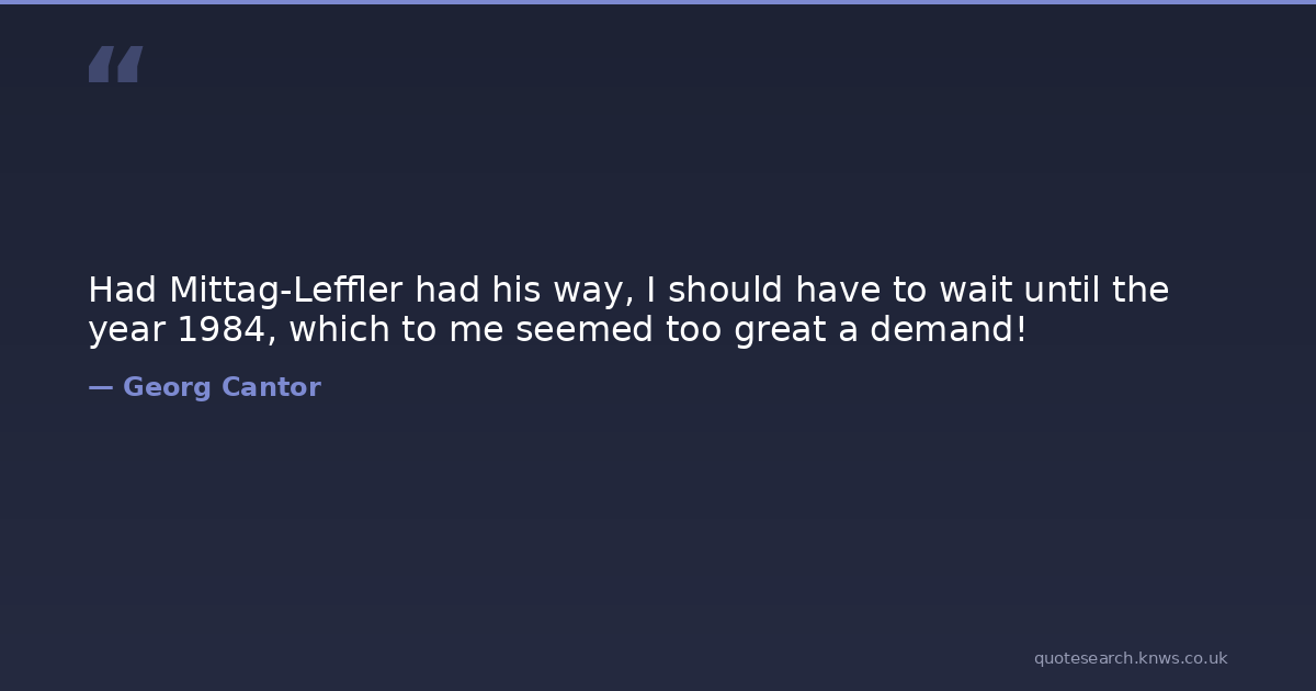 Had Mittag-Leffler had his way, I should have to wait until the year 1984, which to me seemed too great a demand!