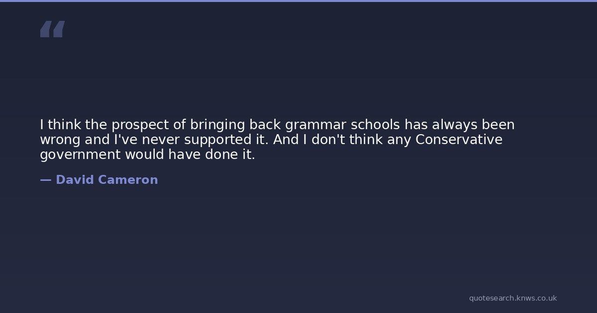 I think the prospect of bringing back grammar schools has always been wrong and I've never supported it. And I don't think any Conservative government would have done it.