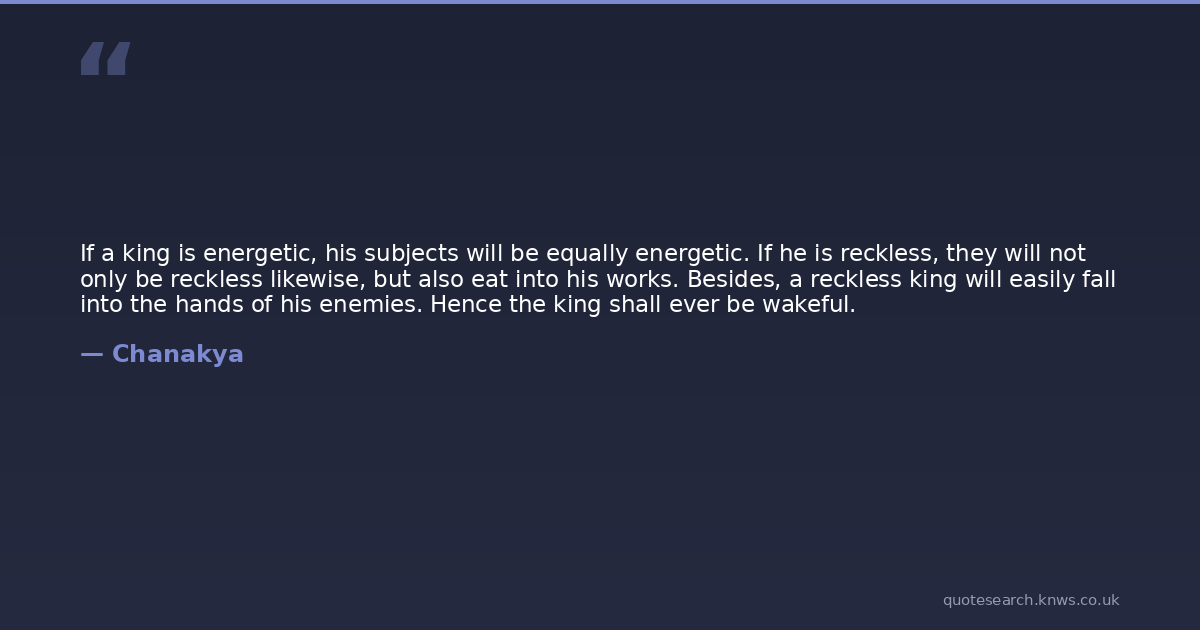 If a king is energetic, his subjects will be equally energetic. If he is reckless, they will not only be reckless likewise, but also eat into his works. Besides, a reckless king will easily fall into the hands of his enemies. Hence the king shall ever be wakeful.