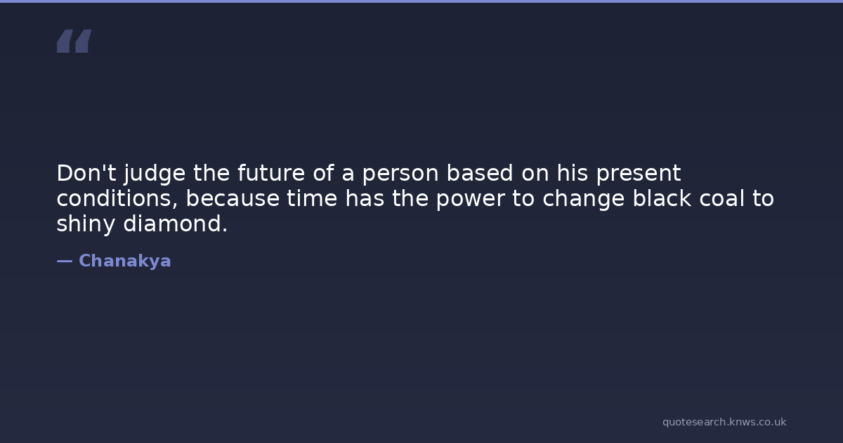 Don't judge the future of a person based on his present conditions, because time has the power to change black coal to shiny diamond.