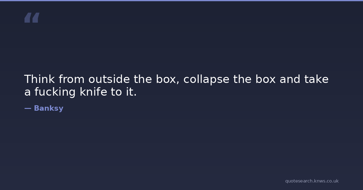 Think from outside the box, collapse the box and take a fucking knife to it.