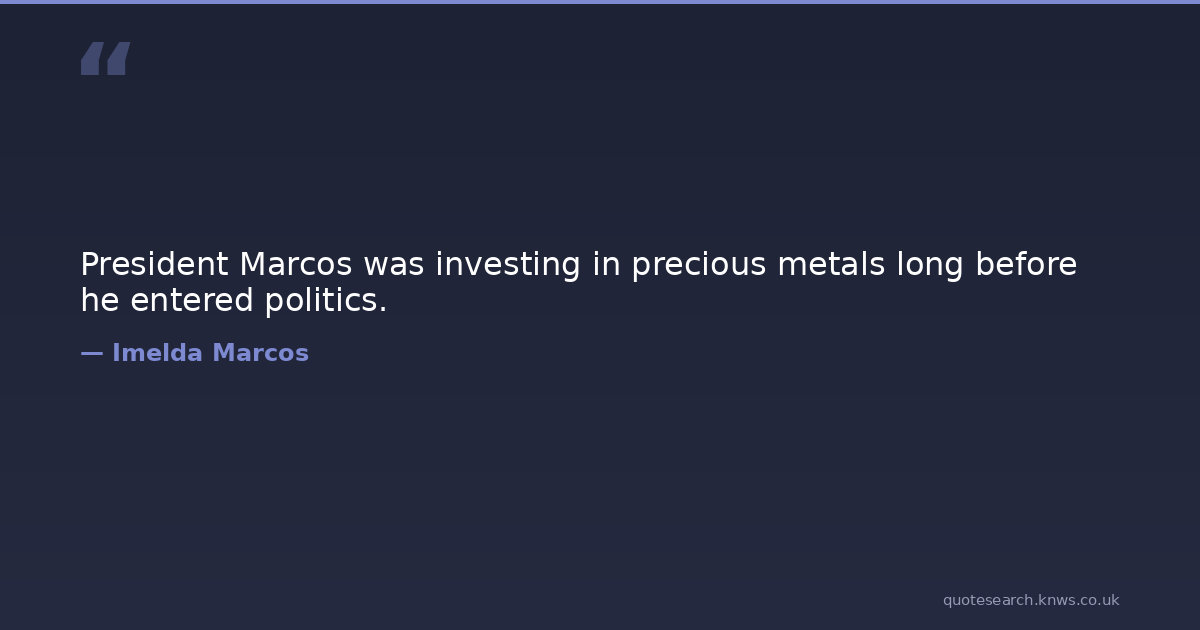 Imelda Marcos was first lady of the philippines from 1965 to 1986. Imelda Romualdez Marcos is a Filipino politician who was First Lady of the Philippines from 1965 to 1986, wielding significant political power after her husband Ferdinand Marcos placed the country under martial law in September 1972. She is the mother of current president Bongbong Marcos. Read more on Wikipedia →