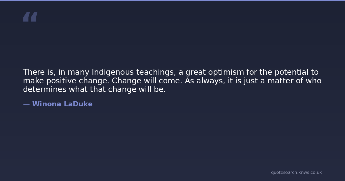 There is, in many Indigenous teachings, a great optimism for the potential to make positive change. Change will come. As always, it is just a matter of who determines what that change will be.