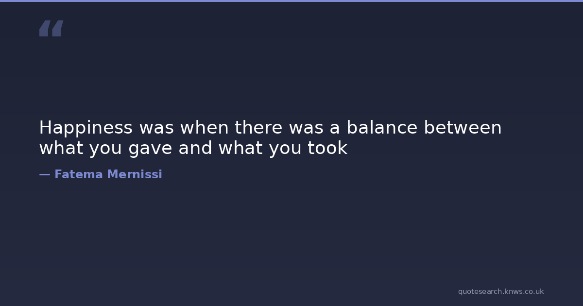 Happiness was when there was a balance between what you gave and what you took