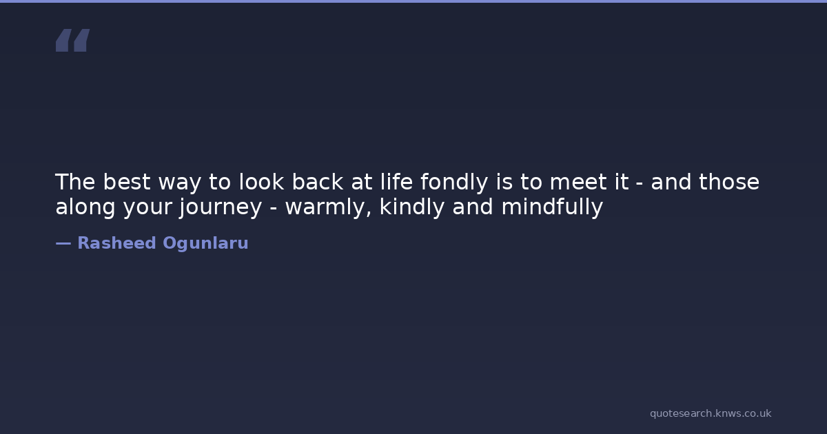The best way to look back at life fondly is to meet it - and those along your journey - warmly, kindly and mindfully