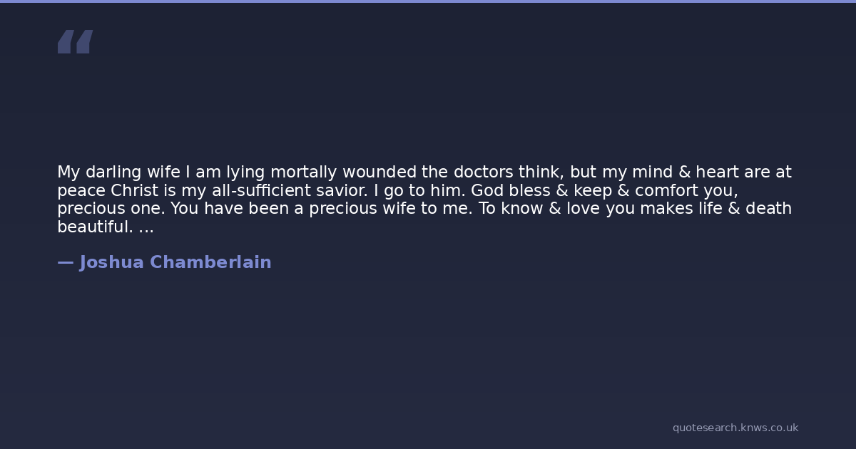 My darling wife I am lying mortally wounded the doctors think, but my mind & heart are at peace Christ is my all-sufficient savior. I go to him. God bless & keep & comfort you, precious one. You have been a precious wife to me. To know & love you makes life & death beautiful. Cherish the darlings & give my love to all the dear ones. Do not grieve too much for me. We shall all soon meet Live for the children Give my dearest love to Father, Mother & Sallie & John Oh how happy to feel yourself forgiven God bless you evermore precious precious one Ever yours, Lawrence.