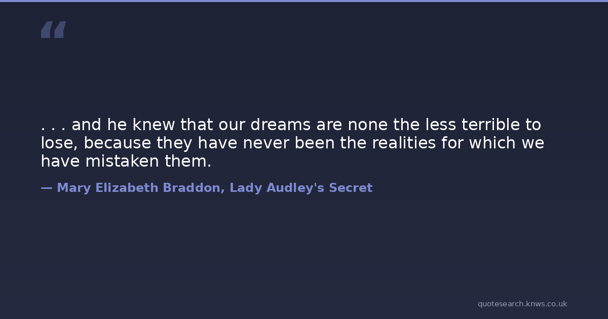 . . . and he knew that our dreams are none the less terrible to lose, because they have never been the realities for which we have mistaken them.