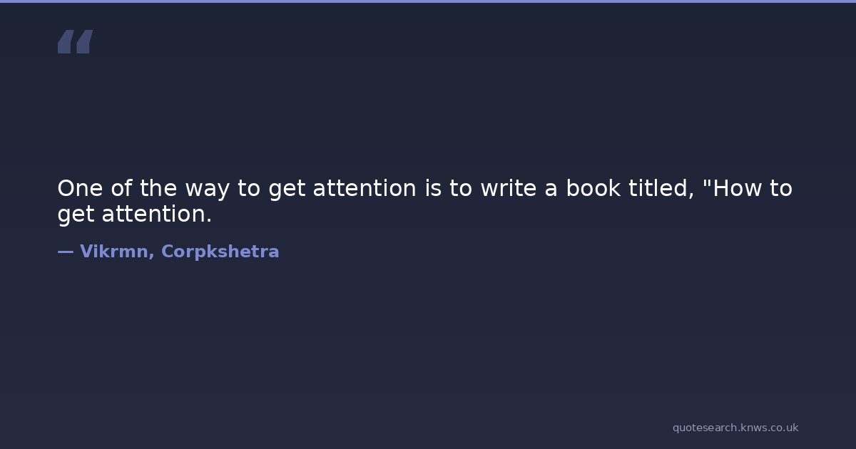 One of the way to get attention is to write a book titled, "How to get attention. attention book ca-vikram-verma chartered-accountant corpkshetra corporate motivational-quotes vikram vikram-verma vikrmn vvck write-a-book Download Image Share on X Share on Facebook Copy Link