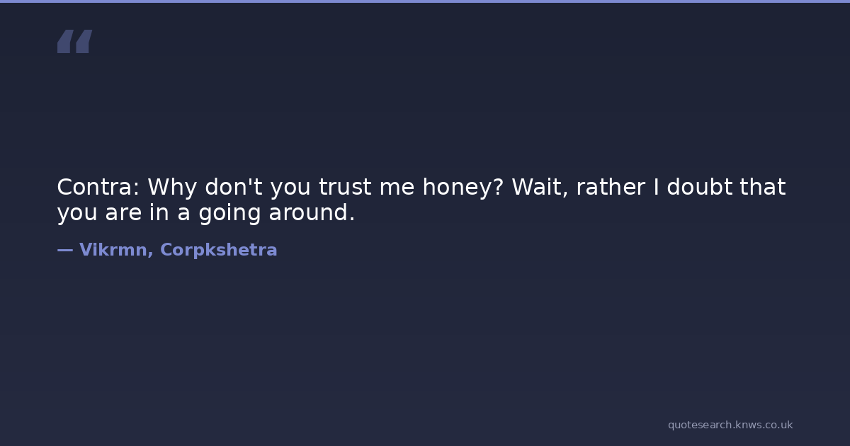 Contra: Why don't you trust me honey? Wait, rather I doubt that you are in a going around.