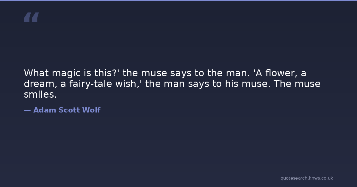 What magic is this?' the muse says to the man. 'A flower, a dream, a fairy-tale wish,' the man says to his muse. The muse smiles.