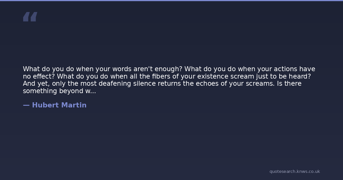 What do you do when your words aren't enough? What do you do when your actions have no effect? What do you do when all the fibers of your existence scream just to be heard? And yet, only the most deafening silence returns the echoes of your screams. Is there something beyond words and action?
