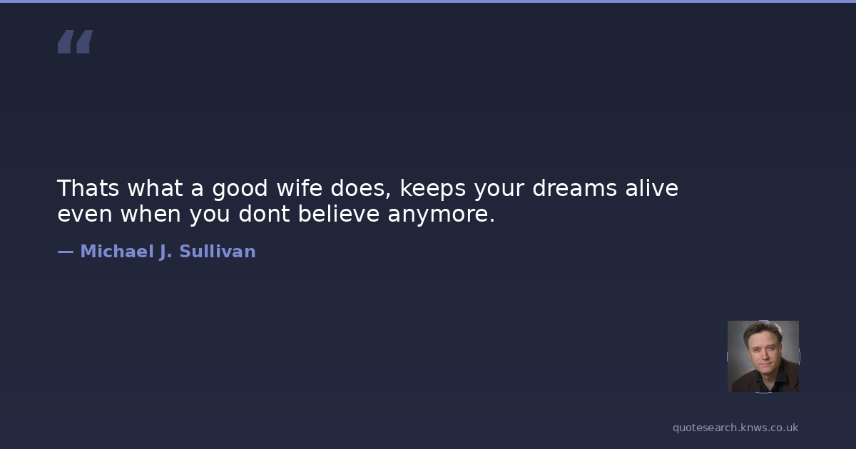 Thats what a good wife does, keeps your dreams alive even when you dont believe anymore.