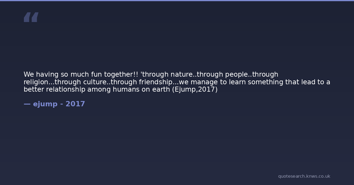 We having so much fun together!! 'through nature..through people..through religion...through culture..through friendship...we manage to learn something that lead to a better relationship among humans on earth (Ejump,2017)