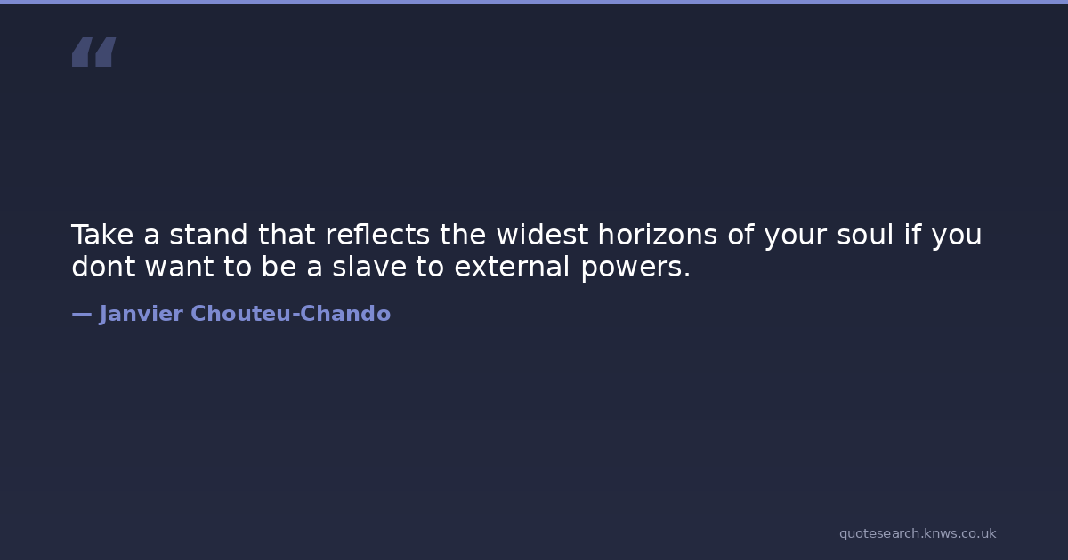 Take a stand that reflects the widest horizons of your soul if you dont want to be a slave to external powers.