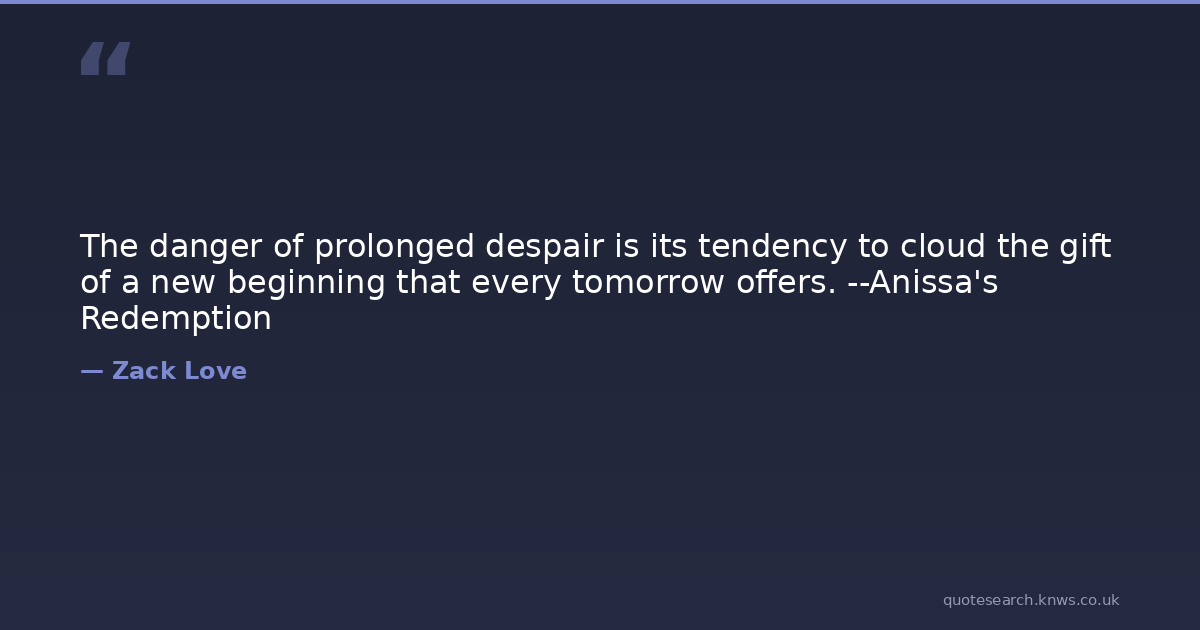 The danger of prolonged despair is its tendency to cloud the gift of a new beginning that every tomorrow offers. --Anissa's Redemption