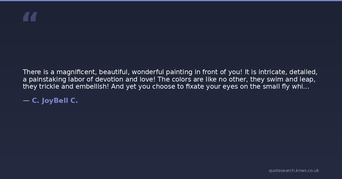 There is a magnificent, beautiful, wonderful painting in front of you! It is intricate, detailed, a painstaking labor of devotion and love! The colors are like no other, they swim and leap, they trickle and embellish! And yet you choose to fixate your eyes on the small fly which has landed on it! Why do you do such a thing?