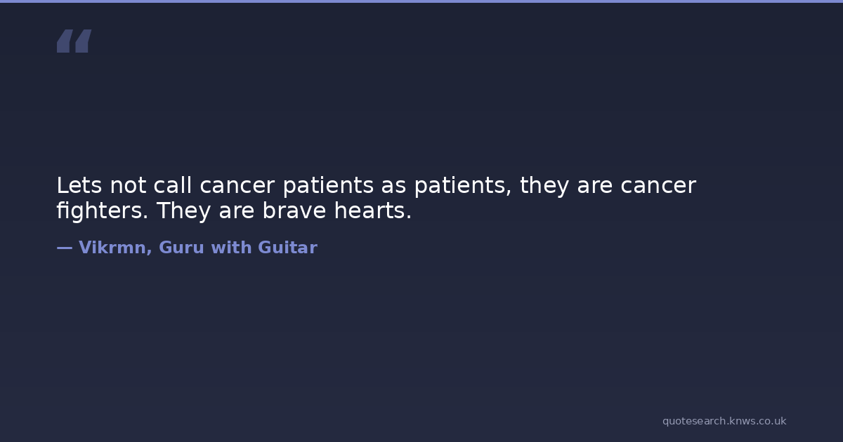 Lets not call cancer patients as patients, they are cancer fighters. They are brave hearts.