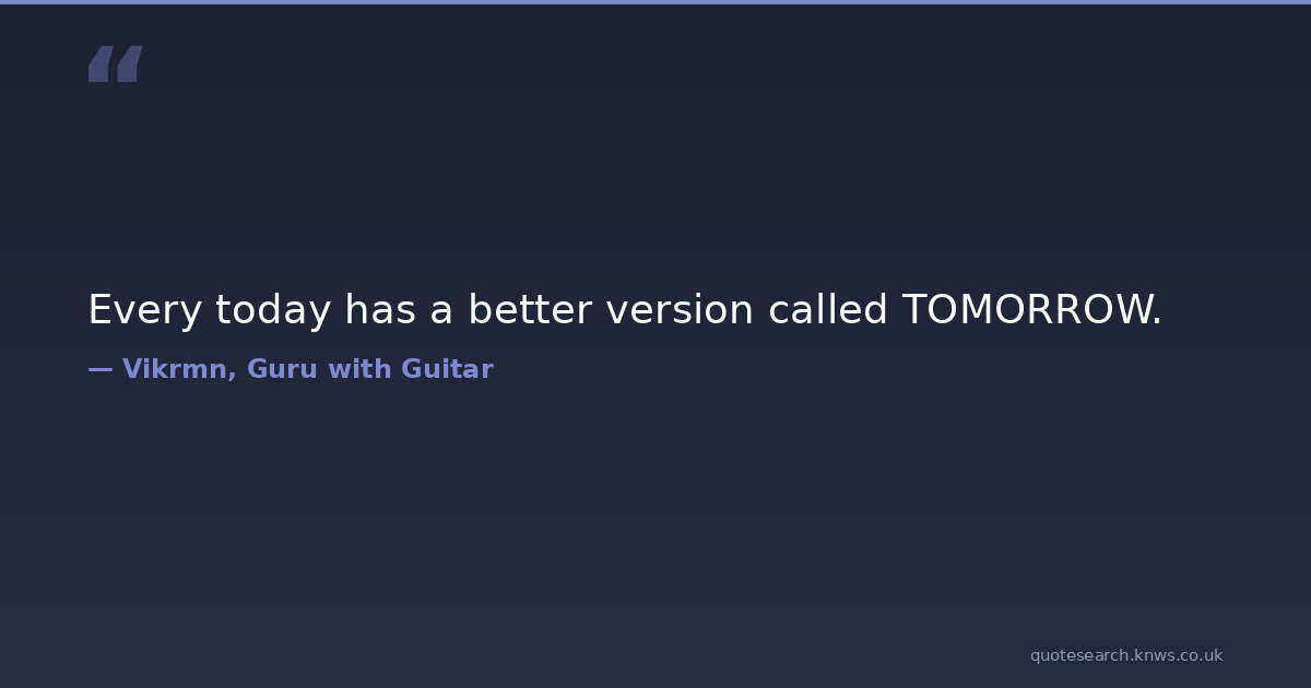 Every today has a better version called TOMORROW. better ca-vikram-verma chartered-accountant guru-with-guitar gwg motivational-quotes today tomorrow version vikram vikram-verma vikrmn Download Image Share on X Share on Facebook Copy Link