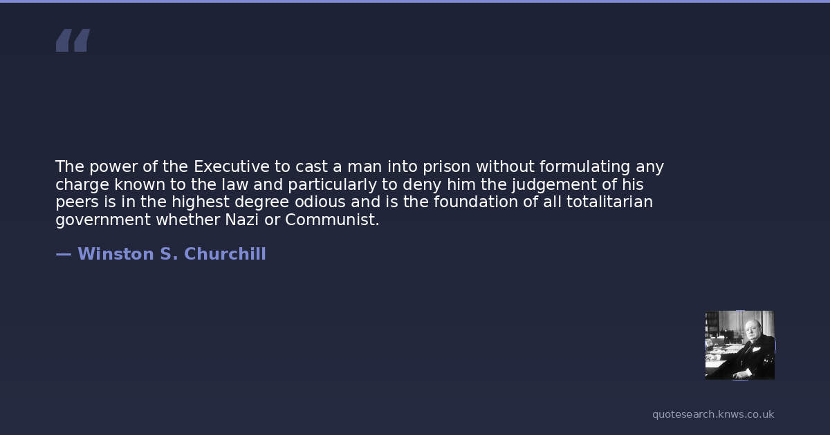 The power of the Executive to cast a man into prison without formulating any charge known to the law and particularly to deny him the judgement of his peers is in the highest degree odious and is the foundation of all totalitarian government whether Nazi or Communist.