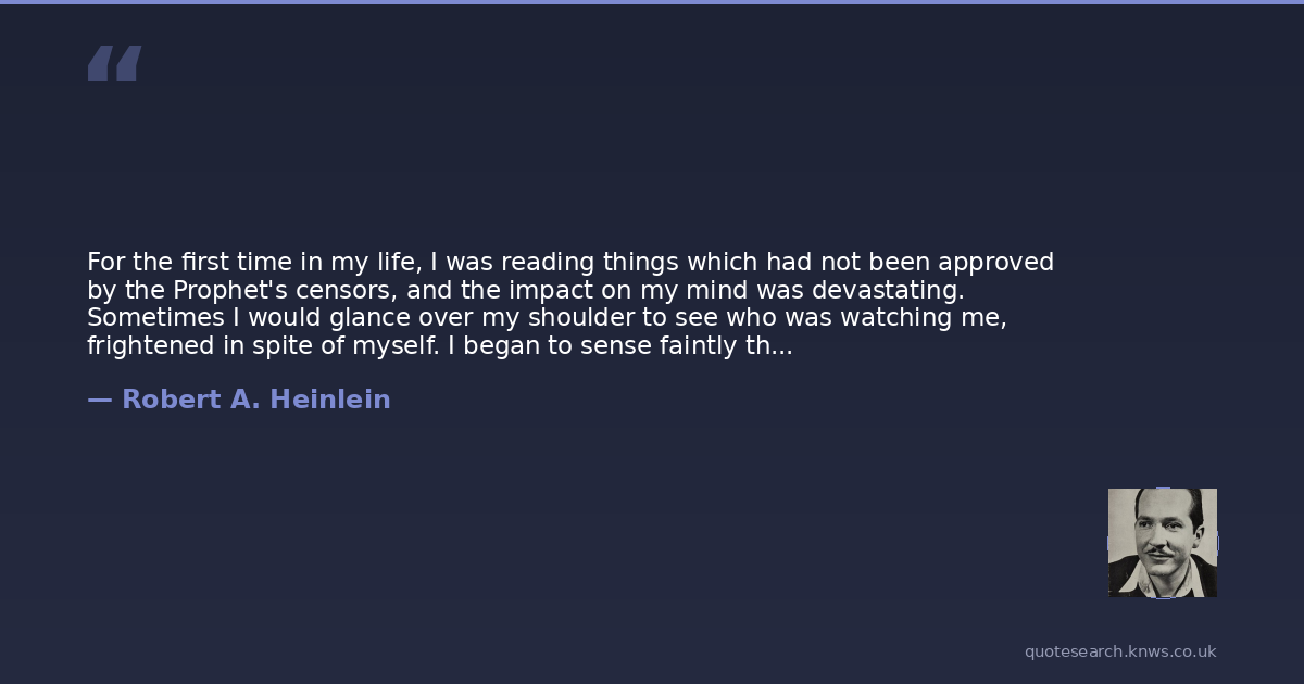 For the first time in my life, I was reading things which had not been approved by the Prophet's censors, and the impact on my mind was devastating. Sometimes I would glance over my shoulder to see who was watching me, frightened in spite of myself. I began to sense faintly that secrecy is the keystone of all tyranny. Not force, but secrecy...censorship. When any government, or any church for that matter, undertakes to say to it's subjects, This you may not read, this you must not see, this you are forbidden to know, the end result is tyranny and oppression, no matter how holy the motives. Mighty little force is needed to control a man whose mind has been hoodwinked, contrariwise, no amount of force can control a free man, a man whose mind is free. No, not the rack, not fission bombs, not anything---you can't conquer a free man; the most you can do is kill him.
