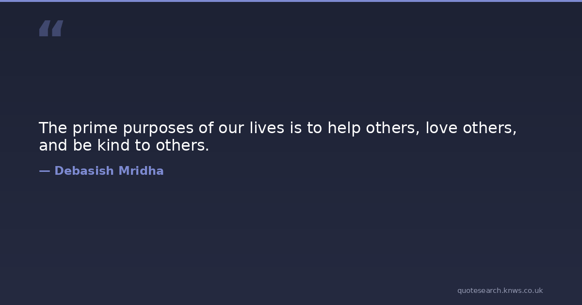 The prime purposes of our lives is to help others, love others, and be kind to others.
