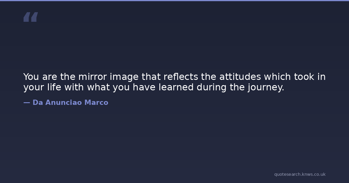 You are the mirror image that reflects the attitudes which took in your life with what you have learned during the journey.