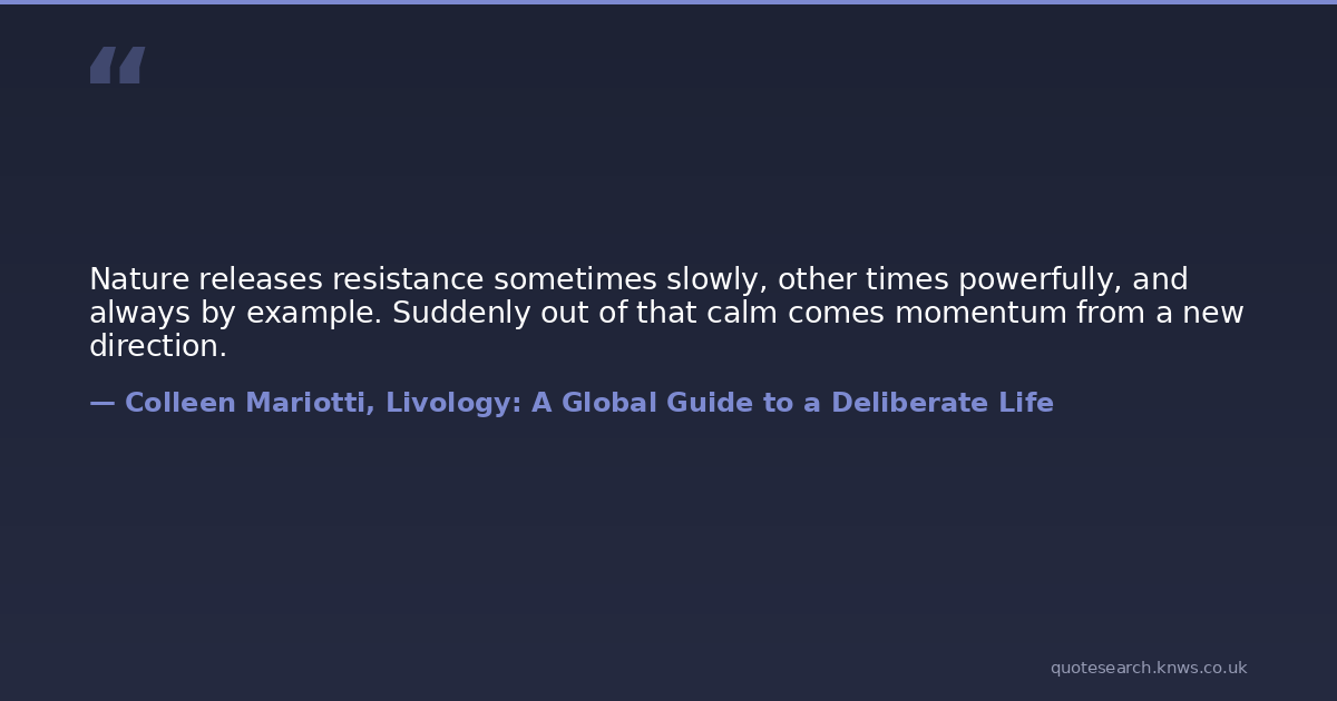 Nature releases resistance sometimes slowly, other times powerfully, and always by example. Suddenly out of that calm comes momentum from a new direction.