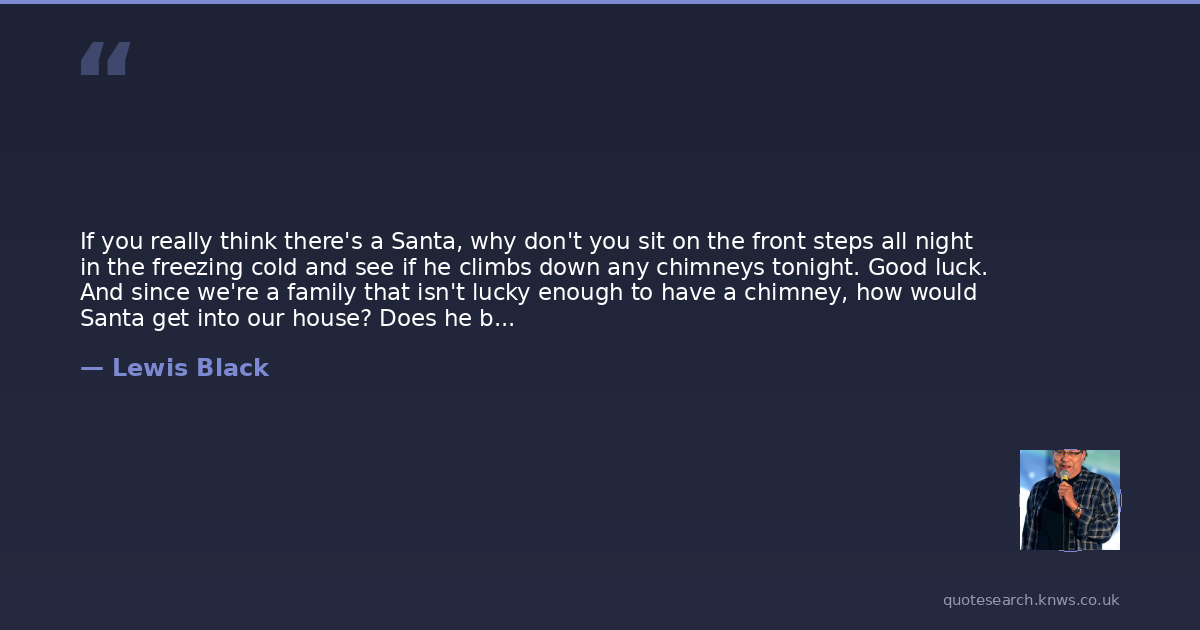 If you really think there's a Santa, why don't you sit on the front steps all night in the freezing cold and see if he climbs down any chimneys tonight. Good luck. And since we're a family that isn't lucky enough to have a chimney, how would Santa get into our house? Does he bring a locksmith with him? And it probably would have to be a Jewish locksmith, because a Christian locksmith is going to want to be home with his family. And how many Jewish locksmiths are there? None.