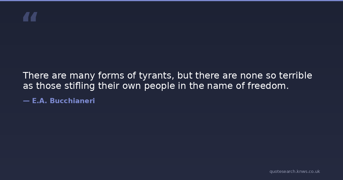 There are many forms of tyrants, but there are none so terrible as those stifling their own people in the name of freedom.